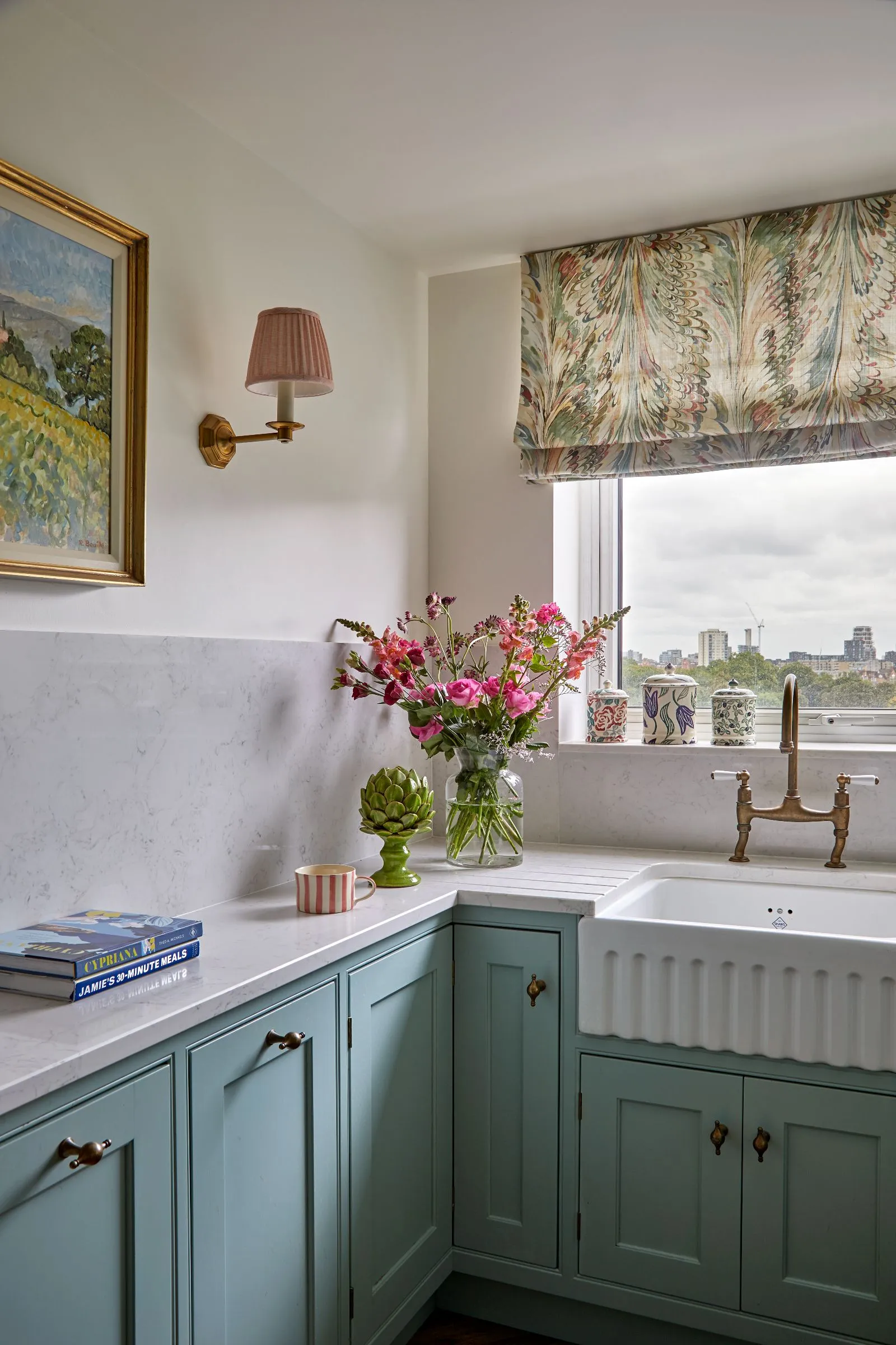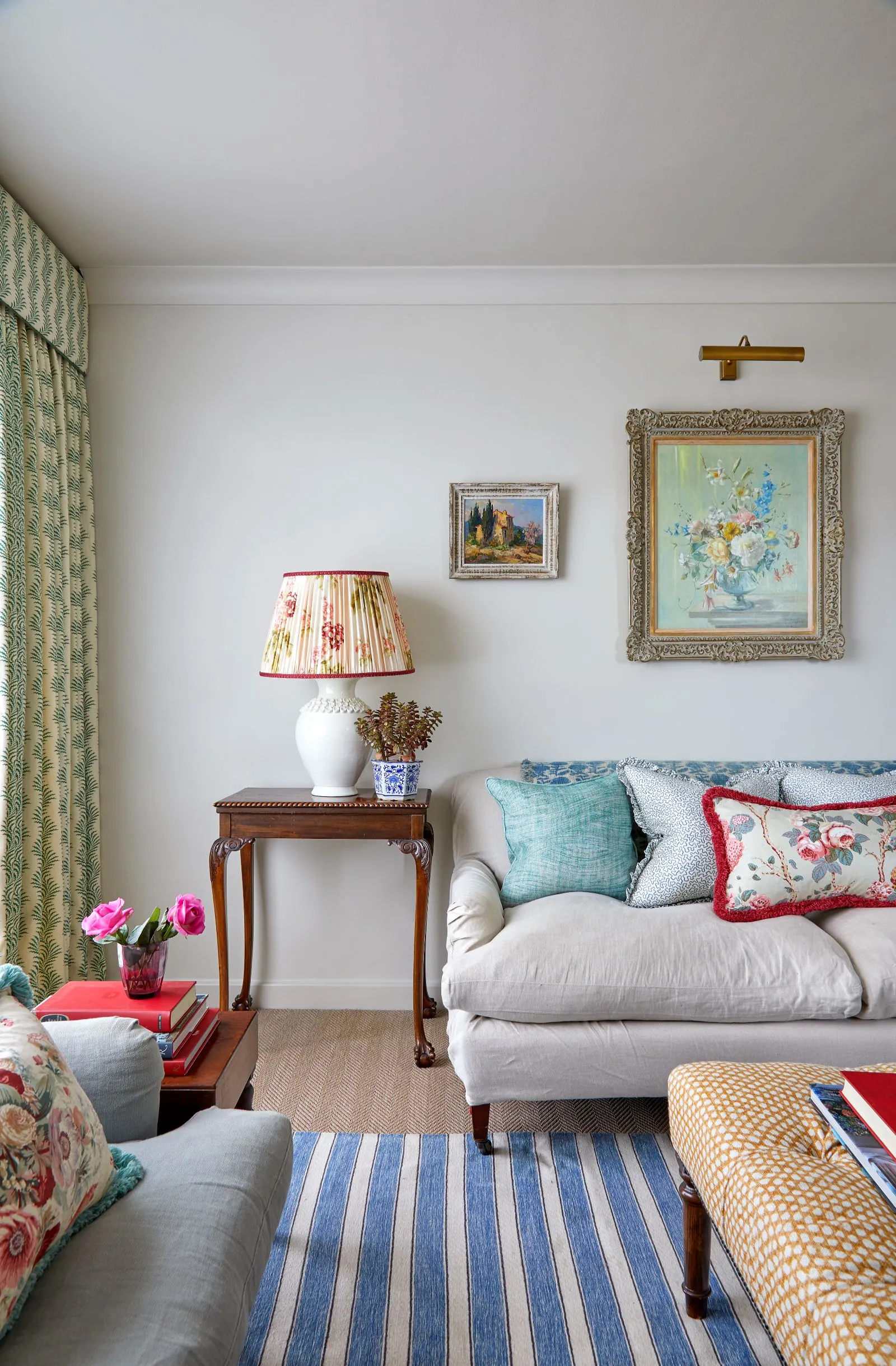 Following the sale, we were invited to help with her new flat in a nearby block, a practical and well-located space with a lift and secure parking, but in need of a full redesign. We created new floorplans, designed a fresh kitchen and bathroom, and redecorated throughout. Wherever possible, we reused favourite pieces from her family home, combining them with new finds to create a space that felt pretty, practical and completely her own. The result is a calm, welcoming home that celebrates the next chapter of her life, beautifully considered and full of comfort.